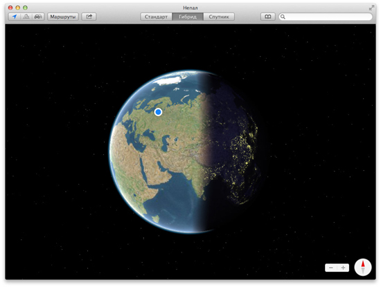 Если максимально уменьшить масштаб в приложении Карты на iPhone, iPad или Mac приложение покажет изображение земли, которое будет в реальном времени отображать вращение планеты вокруг солнца.