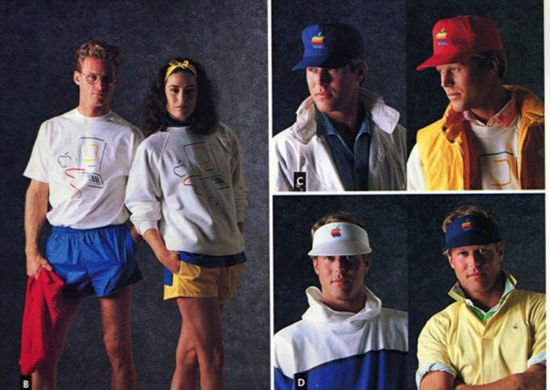Также в 1986 году можно было приобрести толстовки, ветровки, рубашки, поло и даже детскую одежду от Apple.