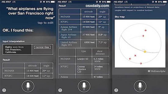 Ваше мобильное устройство сообщит вам эту информацию по запросу «What airplanes are flying above me?» с помощью персонального помощника. Это не самая важная функция, но она наглядно демонстрирует, насколько обширна база данных этой системы.