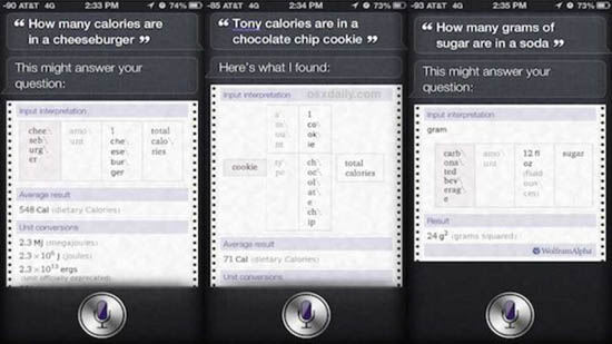 Вопросно-ответная система для iOS способна уведомить вас по запросу о количестве калорий, содержащихся в том или ином продукте. Например, вы можете узнать о ценности чизкейка для организма и так далее.