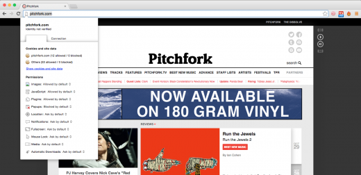 Если сайт, который вы посещаете, кажется подозрительным, то контролируйте всё, что он будет делать в вашем браузере, нажав на иконку страницы, расположенную слева от адреса веб-сайта. Там вы сможете узнать информацию об используемых cookies, а также заблокировать JavaScript, всплывающие окна и многое другое.