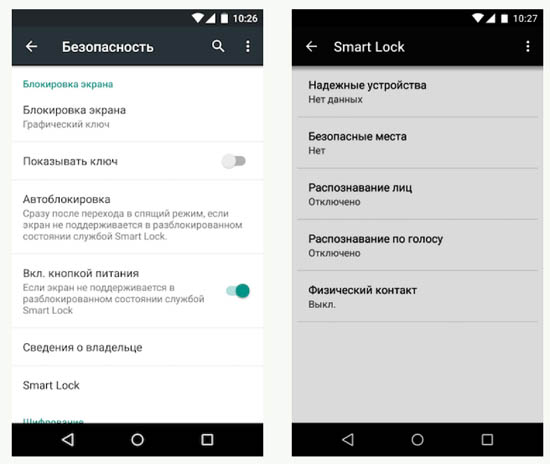 Smart Lock является отличительной особенностью Lollipop. Благодаря данной функции вы сможете разблокировать девайс быстро и просто при помощи заранее настроенных «доверенных устройств» (Bluetooth-гарнитуры, умных часов и т. д.), по местоположению (дома, в офисе), по лицу или голосу.