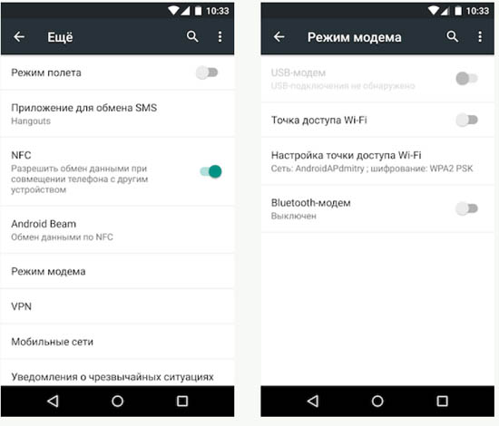 Для того чтобы поделиться интернетом с другими девайсами, откройте «Настройки», затем в блоке «Беспроводные сети» нажмите на пункт «Ещё» и далее «Режим модема». Обращаем внимание, что название может быть другим, ровно как и расположение в настройках. Всё зависит от гаджета.