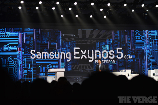 На выставке CES 2013 Samsung показала восьмиядерный мобильный процессор Exynos 5 Octa. Восемь вычислительных ядер процессора разделены на две группы по четыре штуки – ядра первой группы построены на архитектуре Cortex-A15, а второй - на архитектуре Cortex-A7. Первая группа ядер выполняет ресурсоемкие задачи, вторая – задачи, не требующие большой вычислительной мощности.
