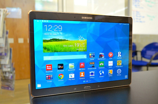 Оснащен планшет, как и 8.4дюймовый гаджет, дисплеем Super AMOLED, 3 Гб оперативной памяти, восьмиядерным Samsung Exynos 5420, Exynos, основным и фронтальным шутером (8-МП и 2.1-МП соответственно), а также встроенной 7900-мАч батареей.