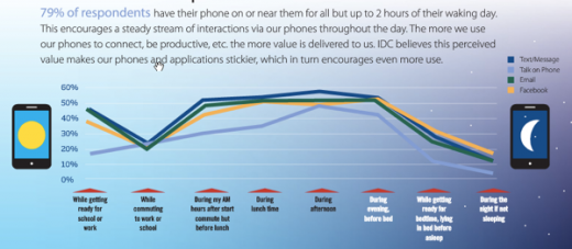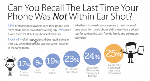 Очевидно, что смартфоны — растущий рынок, на который нельзя не заглядываться. И у каждого из нас есть хотя бы несколько знакомых, которые буквально не могут расстаться со своим айфончиком — забыв его дома или не взяв с собой в туалет, они испытывают почти что физическую боль. И таких людей много! Около 25% не могут вспомнить, когда в последний раз их телефон был далеко от них — соответственно, такие люди постоянно находятся онлайн.