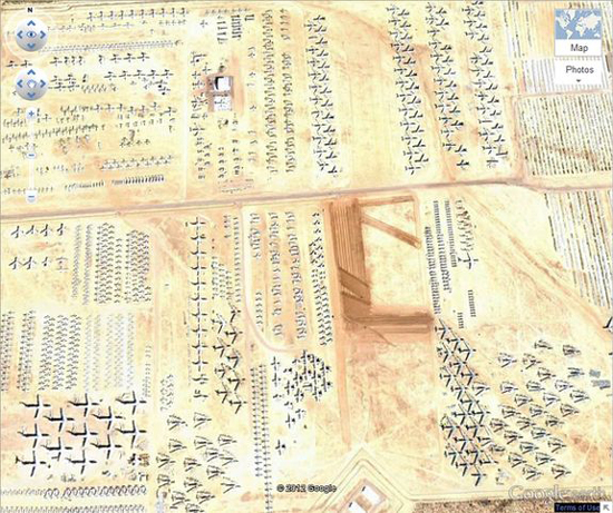 Кладбище самолётов расположилось на 32 08’59.96″ с.ш., 110 50’09.03″ в.д. неподалёку от города Тусон (Аризона). Здесь можно обнаружить практически любой самолёт, бывший на вооружении США со времён Второй мировой войны.