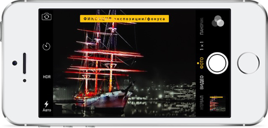 Активировав функцию HDR, iPhone автоматически произведёт три фотоснимка с разной экспозицией и соединит лучшие части в одном снимке. Начиная с iPhone 5s больше нет необходимости постоянно включать эту функцию. Достаточно нажать на иконку HDR и выбрать режим «Авто».