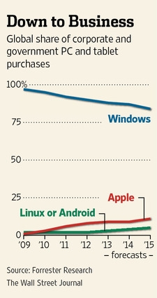 Аналитики предполагают, что к 2015 году этот показатель увеличится до отметки в 11%. Больше всего в результатах исследование впечатляет факт того, что данные Forrester Research не учитывают долю iPhone, который становится все более востребованным среди деловых людей.