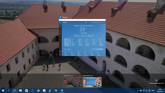 Я долгое время с завистью поглядывал на пользователей Mac OS и Linux в плане виртуальных столов. Это же очень удобно иметь один рабочий стол для дома, а второй, например ,для работы. Наконец мои мечты свершились. Microsoft, хоть и с опозданием, но всё же дала возможность пользователям создать виртуальные столы. На каждом из них можно открывать разные приложения, что весьма удобно. Переключение между столами производится кнопками Win+Tab.