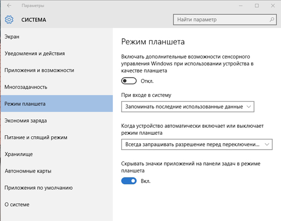 Windows 10 поддерживает функцию Continuum, призванную автоматически адаптировать внешний вид ОС под тип используемого устройства. Пользователи гибридных устройств и планшетов столкнулись с проблемой оптимизации приложений. «Режим планшета» решает эту проблему. Его легко включить в Центре уведомлений, а настроить в Параметрах.