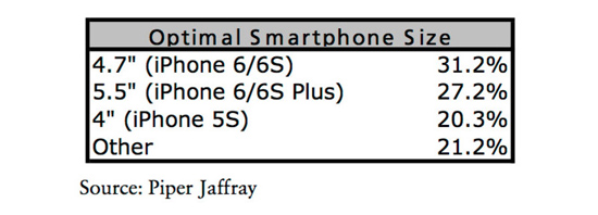 Комментируя результаты исследования, Джин Манстер из Piper Jaffray отметил, что новый 4-дюймовый iPhone, скорее всего, не окажет существенного влияния на продажи Apple. Большинство потребителей не стремятся вернуться к компактным смартфонам после того, как попробуют более крупные аналоги.