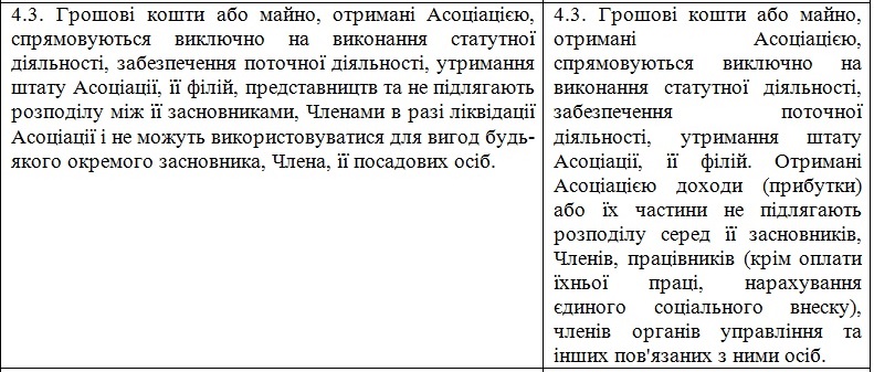 b) зміни щодо підтвердження статусу неприбутковості.