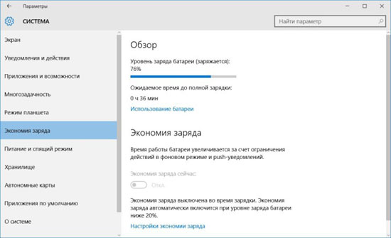 В новых настройках Windows 10 появился пункт “Экономия заряда”. Как понятно из названия, нужен он для того, чтобы помочь устройству дольше прожить. Делается это путем ограничения фоновой активности некоторых программ, а также благодаря регулировке различных параметров системы. Плюс к этому у вас теперь есть доступ к отчетам, которые помогают определить самое “прожорливое” приложение. Находится все это по пути Параметры → Система → Экономия заряда. Если вы пользуетесь Windows 10 на обычном компьютере, то этой вкладки не будет, что вполне логично.