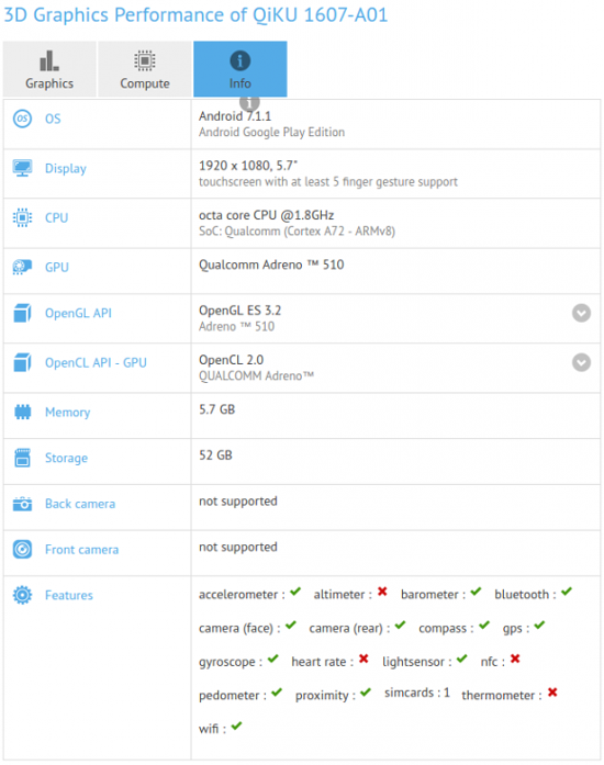 Кстати, у 360 Mobiles уже есть смартфон с таким количеством памяти — это 360 N5 с Snapdragon 653. Новый гаджет с модельным обозначением QiKU 1607-A01 во многом схож по параметрам с N5. Возможно, что речь идет о 360 N5 Plus.