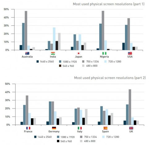 Что касается разрешения, то по подсчётам аналитиков, самыми популярными являются экраны с разрешением 1334х750 точек. Такие результаты объясняются высоким спросом на iPhone 6 и iPhone 6S.