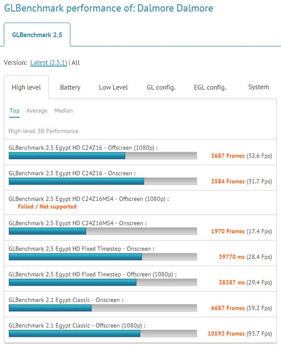 В тестовой платформе использовалась операционная система Android 4.2.1, разрешение экрана составляло 1920×1128 точек, процессор работал с максимальной частотой 1,8 ГГц. Однако показатели оказались ниже, чем ожидалось. Например, в тесте Egypt HD Offscreen чип Tegra 4 показал 32,6 fps, в то время как у iPad 4 он составляет в среднем 49,6 fps; аналогичные результаты получены и по другим тестам.