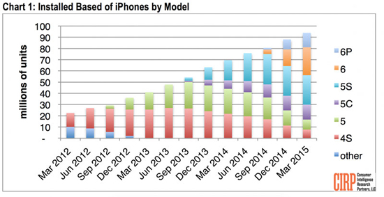 «Комментируя квартальный отчет, глава Apple Тим Кук заявил, что многие еще не обновились на iPhone 6 и 6 Plus, – пишет сооснователь CIRP Джош Ловитц. – По нашим оценкам, около 40% пользователей iPhone в США перешли на iPhone 6 и iPhone 6 Plus. 56 млн владельцев более ранних iPhone являются потенциальными покупателями флагманских моделей».