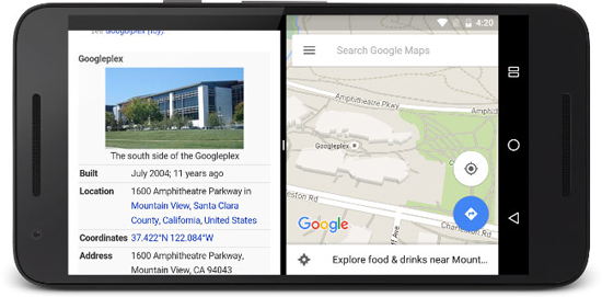 Android N стала первой версией операционной системы от Google с поддержкой мультиоконного режима. Пользователи смогут вывести на экран два разных приложения одновременно, а также установить удобный для себя размер окон. Такая функция появилась на iPad в прошлом году (правда, поддерживают его только iPad, от Air 2 и выше). Но в отличие от iOS, режим нескольких окон в Android N будет поддерживаться и смартфонами. Чтобы перейти в этот режим, нужно открыть шторку многозадачности, выбрать нужное приложение и «оттащить» его окно вверх дисплея.