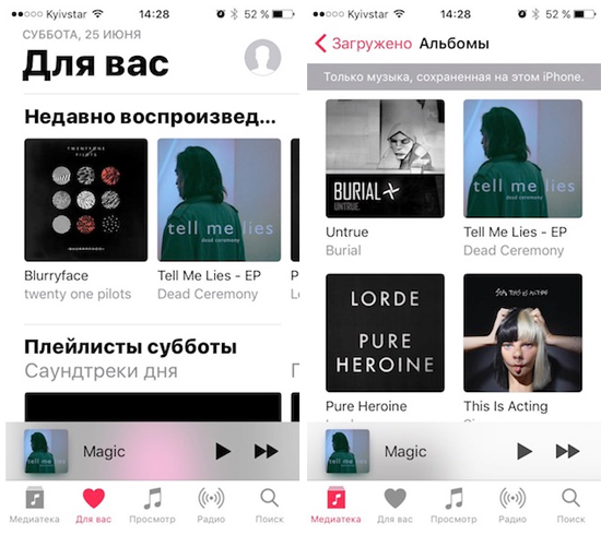 Стриминговый сервис, на упрощение которого возлагали надежды пользователи и аналатики, действительно поменялся. И судя по его поведению на моем iPhone 5s — не в лучшую сторону. Огромные шрифты, которые в русской локализации лезут отовсюду недостающими буквами, отсутсвие единого экрана со статусом загрузки треков, странная система рекомендаций. Элементы интерфейса занимают столько места, что складывается ощущение, будто подсматриваешь в дверной глазок — настолько мало помещается на экране. Я действительно не понимаю, как буду жить с таким музыкальным сервисом.