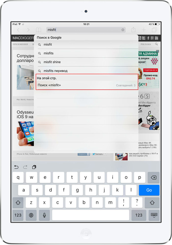 Для того, чтобы начать, достаточно, находясь на нужной веб-странице, тапнуть на адресную строку и вбить нужное слово. Затем встроенный Google Search предложит вам вариантов поиска, включая с пометкой «На этой стр.». Выбирайте последний.