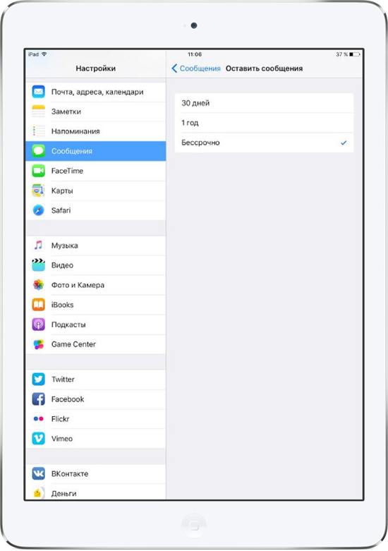 Если вы предпочитаете содержать в порядке и чистоте не только собственную квартиру, но и приложения своем на iPhone, этот совет определенно окажется полезным. iOS обладает функциональностью по автоматическому удалению старых сообщений. Для того, чтобы включить этот режим, необходимо перейти в раздел «Настройки» -> «Сообщения» -> «Оставить сообщения». Перед вами откроется особый раздел, где вы сможете задать время хранения сообщений. Среди вариантов присутствуют разные временные рамки: 30 дней, год и бессрочно. Выбрав нужный вариант, вам больше не придется постоянно подчищать неактуальные сообщения. Система сделает это за вас.