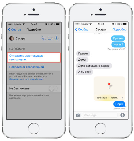 Просто открываем детали чата в «Сообщениях», нажав «Подробно», и жмем «Отправить мою текущую геопозицию». Ваш собеседник получит геометку, которую сразу же можно просмотреть в «Картах» и быстро проложить маршрут до точки назначения. Вместо тысячи слов, как говорится.