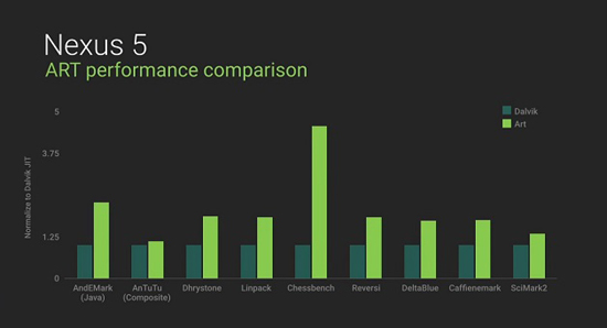 Пользователи iOS-устройств давно предъявляют претензии к производительности и стабильности работы Android и приложений для него. Google предложила решить эту проблему при помощи перехода на рабочую среду ART. Она обеспечивает прирост производительности до 4 раз и более плавную работу интерфейса. Ранее приложения исполнялись в рабочей среде Darvik.