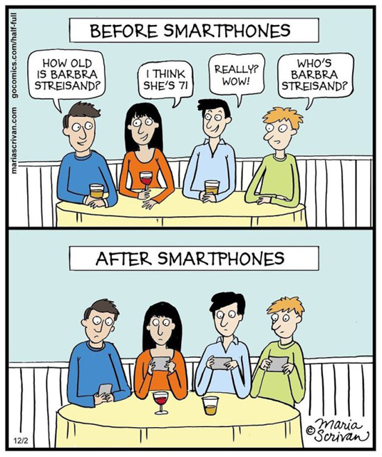 Присмотритесь… На любом концерте полно людей с телефонами и планшетами. Они стараются запечатлеть всё и, вместо того чтобы наслаждаться настоящей картинкой, переживать реальные эмоции, смотрят на экран смартфона. Излишние селфи на природе, в другом городе с достопримечательностями и т. д. затмевают удивительные пейзажи, на которые стоит посмотреть вживую. Безусловно, это здорово — иметь возможность вернуться к определенным моментам в прошлом и прочувствовать их снова, — однако сперва убедитесь, что в настоящем вы проживаете их реально, а не через экран смартфона в роли некой призмы.