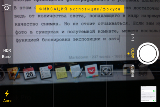 -наведите камеру на темный участок кадра и сделайте тап с удержанием до появления надписи Фиксация экспозиции/фокуса;