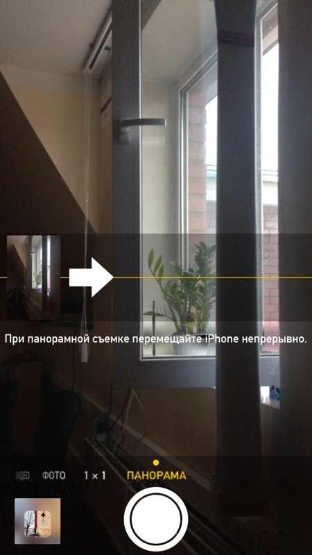 -открываем Камеру и делаем свайп влево, переключаясь в режим Панорама (он в самом конце);