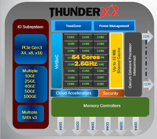 54-ядерные ARM-чипы Cavium ThunderX2 будут быстрее Intel Xeon E5