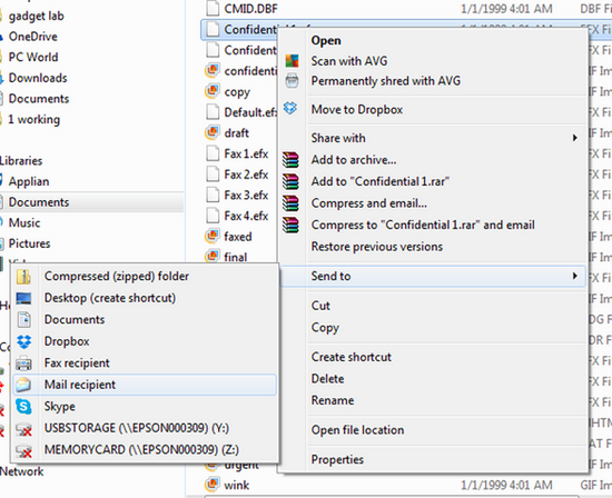 Если вы пользуетесь оффлайновым емейл-клиентом вроде Outlook, Windows 7 и 8 позволяют с лёгкостью пересылать через него любые файлы в качестве аттачментов. Просто сделайте правый клик на файл и выберите Send to > Mail recipient. Ваш почтовый клиент откроет окно создания нового письма с уже прикреплённым файлом. Также в этом меню вы можете найти множество других полезных опций в зависимости от того, какими сервисами и аппаратными компонентами вы пользуетесь.
