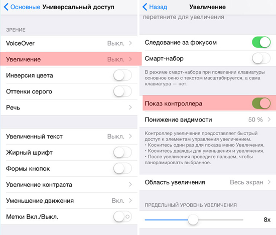 1. Откройте Настройки – Основные – Универсальный доступ – Увеличение.