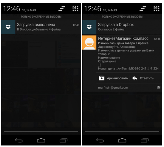 К примеру, мне пришло письмо по Gmail - и прямо в уведомлениях я могу заархивировать его или перейти к форме с ответом. В iOS я могу только просмотреть оповещения, удалить их или перейти к конкретному письму в самом приложении. Удалить, перейти к ответу или заархивировать его непосредственно в Notification Center невозможно, и это огромный минус.