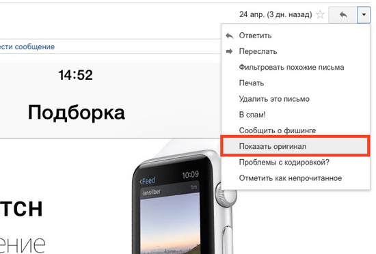 Если вы все еще сомневаетесь, можно посмотреть IP-адрес отправителя и затем «пробить» его через поисковую систему. В веб-версии Outlook сделать это можно так: открыть письмо, нажать на кнопку Действия и выбрать вариант Просмотреть исходный текст. В Gmail следует открыть письмо, кликнуть на меню-треугольник (в правой части экрана, рядом с ним указано время получения письма и находится стрелочка Ответить) и выбрать пункт Показать оригинал.
