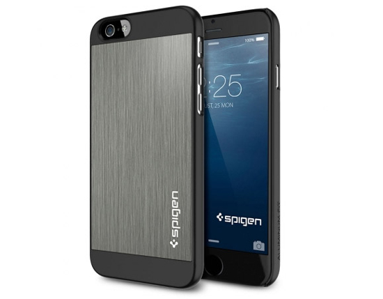 Многие пользователи не любят чехлы, так как в процессе использования устройства им хочется ощущать в руке именно приятную алюминиевую панель iPhone. Но такой подход чреват быстрым появлением царапин на этой самой панели. В компании SPIGEN SGP решили устранить этот недостаток и выпустили стильный чехол из поликарбоната, покрытый сзади тонким слоем алюминия. Пластиковый каркас обеспечивает защиту от повреждений, в то время как задняя панель с металлическим покрытием ощущается так же, как оригинальная поверхность iPhone 6.