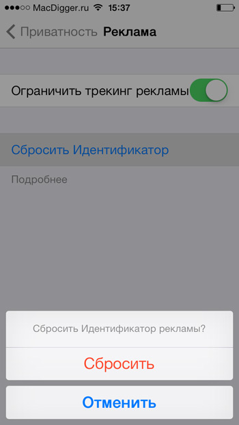 Что можно сделать? На iOS 7 требует от разработчиков приложений использовать другой номер, не заводской. К тому же максимум, что «яблочная компания» разрешает сделать с его помощью, — использовать для рекламных целей. Сбросить идентификатор можно в любой момент, зайдя в меню Настройки –> Приватность –> Реклама. Google пробует что-то подобное с Google AdID, но огромное количество абсолютно разных Android-устройств делает этот процесс затруднительным. Иногда UDID может поменяться после «жесткой» перепрошивки устройства.