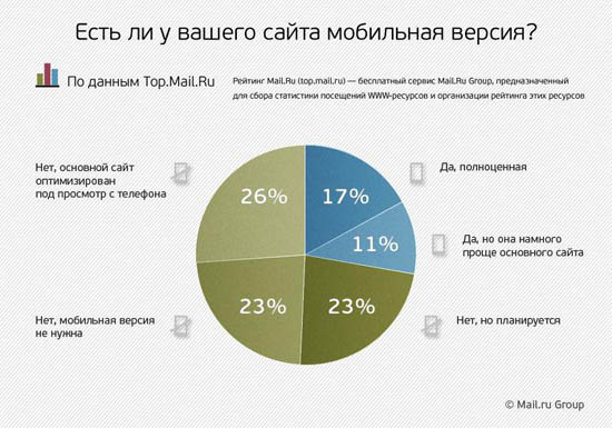 Рейтинг Mail.Ru провел опрос веб-мастеров о наличии мобильных версий у сайтов.