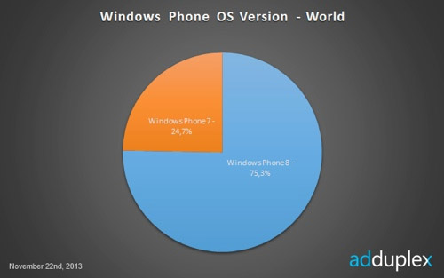 Компания Microsoft больше не заинтересована в операционной системе Windows Phone 7 и во всю занята доработкой и продвижением Windows Phone 8, но при этом доля первой в глобальном масштабе все еще составляет 24,7%, тогда как WP8 контролирует 75,3% соответствующего рынка смартфонов под ОС Microsoft.