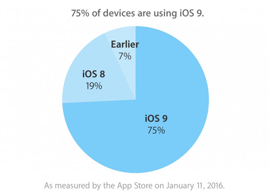 75% пользователей iPhone и iPad уже обновились на iOS 9