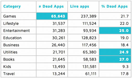 Следуя данной методике подсчета, аналитики получили чудовищное число – 953 387 единиц. Данные за июнь 2014-го, суммарное количество всех программ в App Store официально составляет 1 197 087 штук. То есть, 79,6% из них – «зомби», но не это страшно, а то, какова тенденция «эпидемии». Год назад количество бесполезных приложений в магазине составляло 70% от общей массы, в декабре 2013-го оно подросло до 75%, теперь вот почти 80%. Трудновато осознать, но App Store почти под завязку заполнен бесполезным хламом, разгребать который никто не спешит.