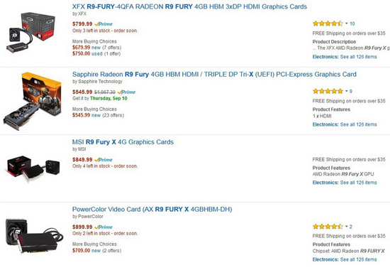 Как сообщает популярный ресурс WCCFTech, в настоящее время на рынке мощных игровых видеокарт наблюдается жесточайший дефицит решений на базе AMD Fiji, а точнее — Radeon R9 Fury X. Официальная рекомендованная производителем цена этой модели — $650, но реальные цены в последнее время куда выше. В частности, популярный сетевой магазин Amazon предлагает Fury X за $899.