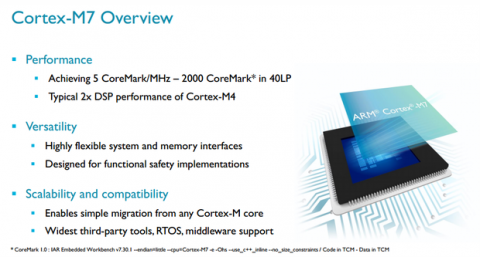 Компания ARM представила новейший процессор Cortex-M7, который предназначен для расширения вычислительных возможностей самых различных предметов. Сфера применения нового процессора невероятно разнообразна: маршрутизаторы, средства автоматизации, различные сенсорные узлы, бытовая техника, а также устройства вычислительной сети "Интернет вещей". Cortex-M7 способен работать с более сложными пользовательскими интерфейсами и операционными системами.