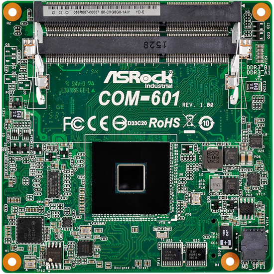 Компания ASRock анонсировала новые решения промышленного формата COM Express: базовую системную плату COM-601 на базе чипов Intel Braswell с поддержкой памяти DDR3L и переходник CAB-601, превращающий её в стандартную плату форм-фактора ATX. По умолчанию базовая плата оснащается процессором Intel Celeron N3150, но возможны и другие варианты, от двухъядерного Celeron N3000 с частотой всего 1,04 ГГц до Pentium N3700 (4 ядра, 2,4 ГГц в турборежиме, 2 Мбайт кеша). Все процессоры этого семейства имеют теплопакет всего 6 ватт за исключением младшей модели, у которой он составляет 4 ватта, так что мощное охлаждение не требуется.