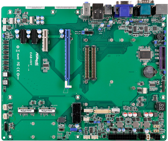 На плате имеется два разъёма Mini-PCIe, полноразмерный слот PCI Express x16, слот x4 с открытым концом и пара слотов x1, также допускающих установку плат расширения с длинными разъёмами PCIe. Судя по плотности разводки печатной платы, два старших слота имеют в лучшем случае конфигурацию x4, либо и вовсе x2, ведь доступных линий PCIe всего семь. Например, можно допустить вариант конфигурации «4+1+1+1», но тогда придётся отключать разъёмы mini-PCIe. Имеется также множество специализированных интерфейсов, таких, как последовательные порты и GPIO, но есть и четыре привычных порта USB 3.0. Новая система ASRock предназначена для автоматизации различных процессов, установки в панельные ПК, терминалы и игровые автоматы. Съёмный базовый модуль позволит легко заменить процессор в случае появления более мощных моделей.