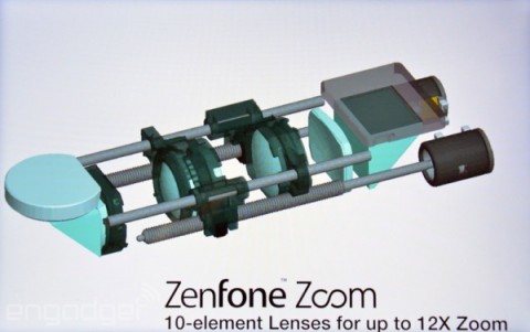 Компания ASUS представила ZenFone Zoom – смартфон, оснащённый 13-мегапиксельной основной камерой с трёхкратным оптическим зумом, оптической стабилизацией изображения, автофокусом, полноценным ручным режимом и двойной вспышкой. Толщина смартфона составляет всего лишь 11,95 мм, что является выдающимся результатом для подобных устройств с оптическим зумом – у того же Samsung Galaxy K Zoom толщина составляла 20,2 мм. Ещё одно неоспоримое достоинство ZenFone Zoom – поддержка стандарта связи LTE. Объём внутренней памяти аппарата может достигать 128 ГБ.
