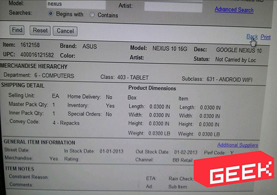 ASUS создавала как оригинальную, так и обновлённую версию Nexus 7, так что у компании вполне налажено неплохое сотрудничество с Google. Сообщается, что обновлённый вариант Nexus 10 выйдет ближе к рождественскому периоду продаж и будет распространяться в США как через сети Best Buy, так и через интернет-магазин Google Play. Точная дата не называется, но зато сообщается, будто сеть Best Buy уже начала готовится к запуску. Приводится даже фотография, указывающая на то, что мы, как минимум, увидим 16-Гбайт версию ASUS Nexus 10 Wi-Fi: