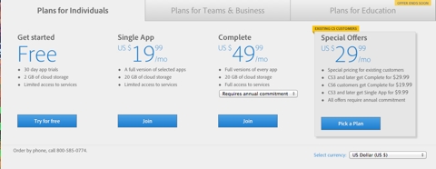 Владельцы Creative Suite 3 и более новых версий смогут подписаться на Creative Cloud со скидкой: владельцы CS3 получат доступ к полной версии Creative Cloud за $29,99 в месяц, а владельцы CS6 - за $19,99 в месяц. Владельцы любой версии смогут получить доступ к одному приложению за $9,99 в месяц. Условием использования скидки является подписка на год. Скидка будет действовать только первый год.