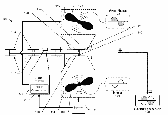 Система шумогашения с помощью контролируемого управления лопастями БПЛА (Amazon)